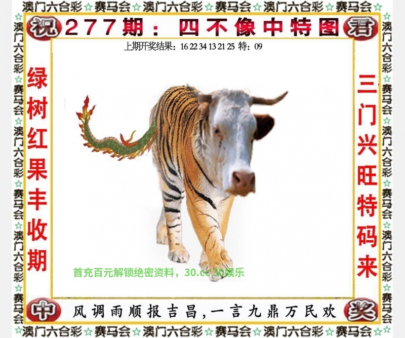 277期:九肖【牛鸡龙蛇猴羊鼠狗】开:虎16准