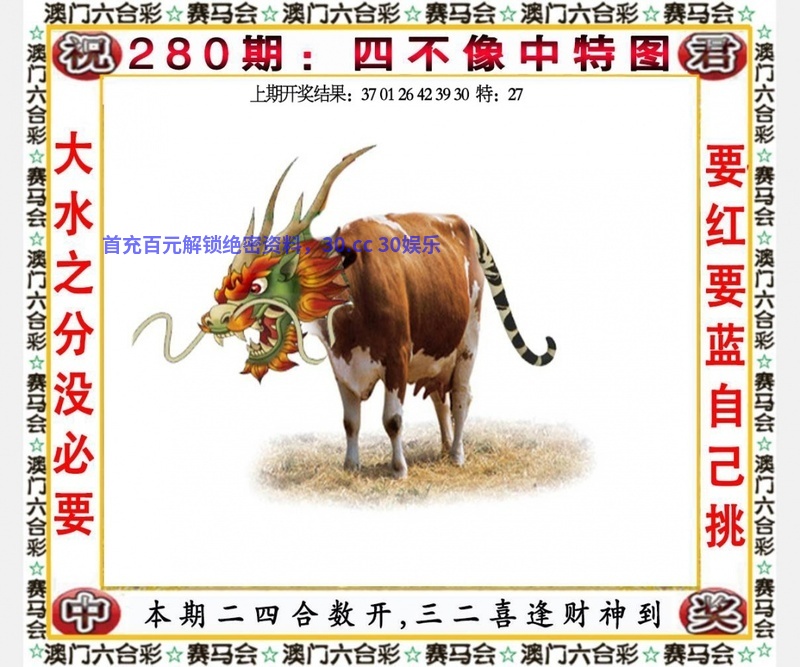 267期:九肖【猪马龙猴羊虎狗兔】开:牛29准